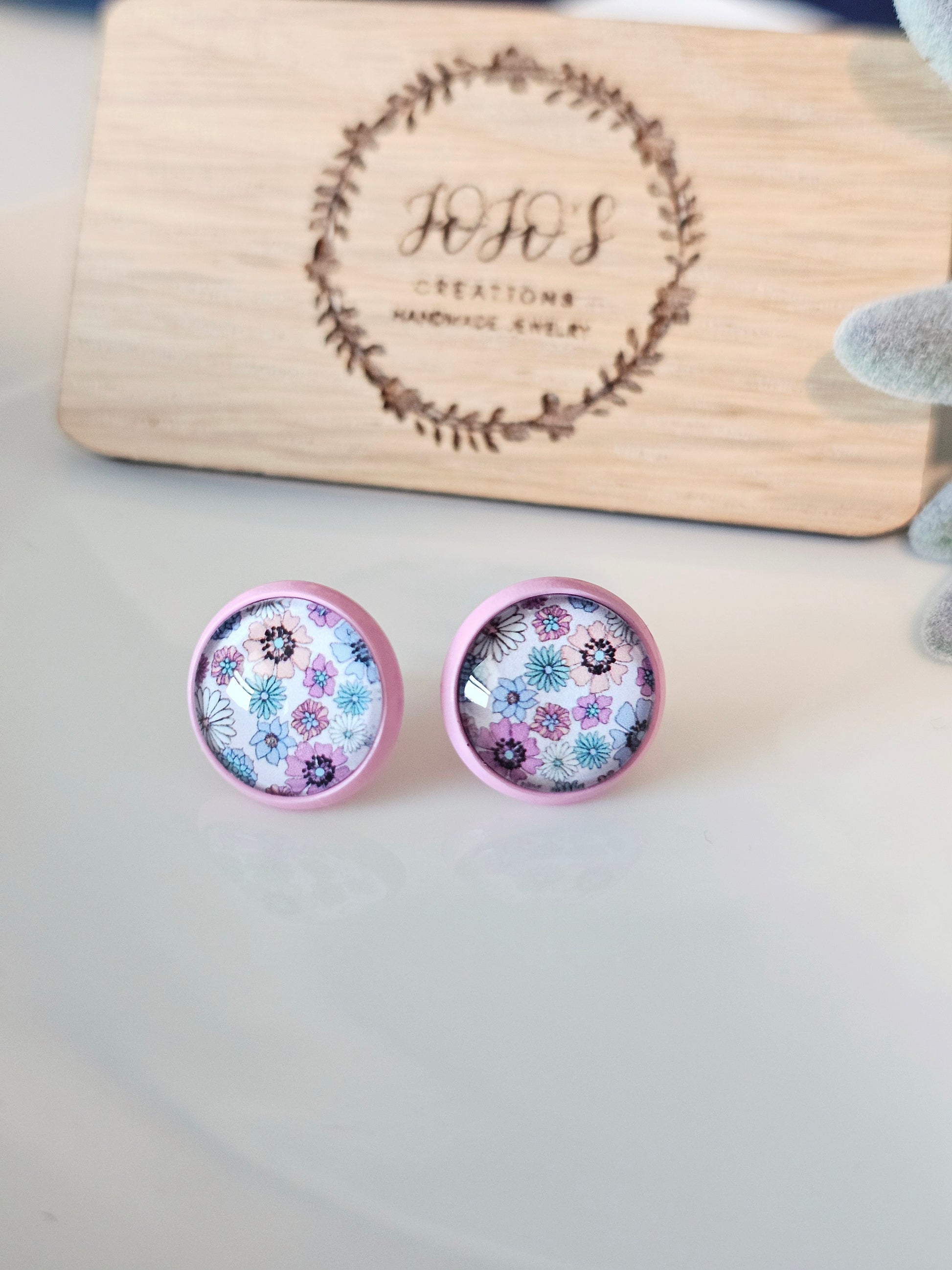 12mm Cabochon set in Light Pink hypoallergenic Bezel Backing.