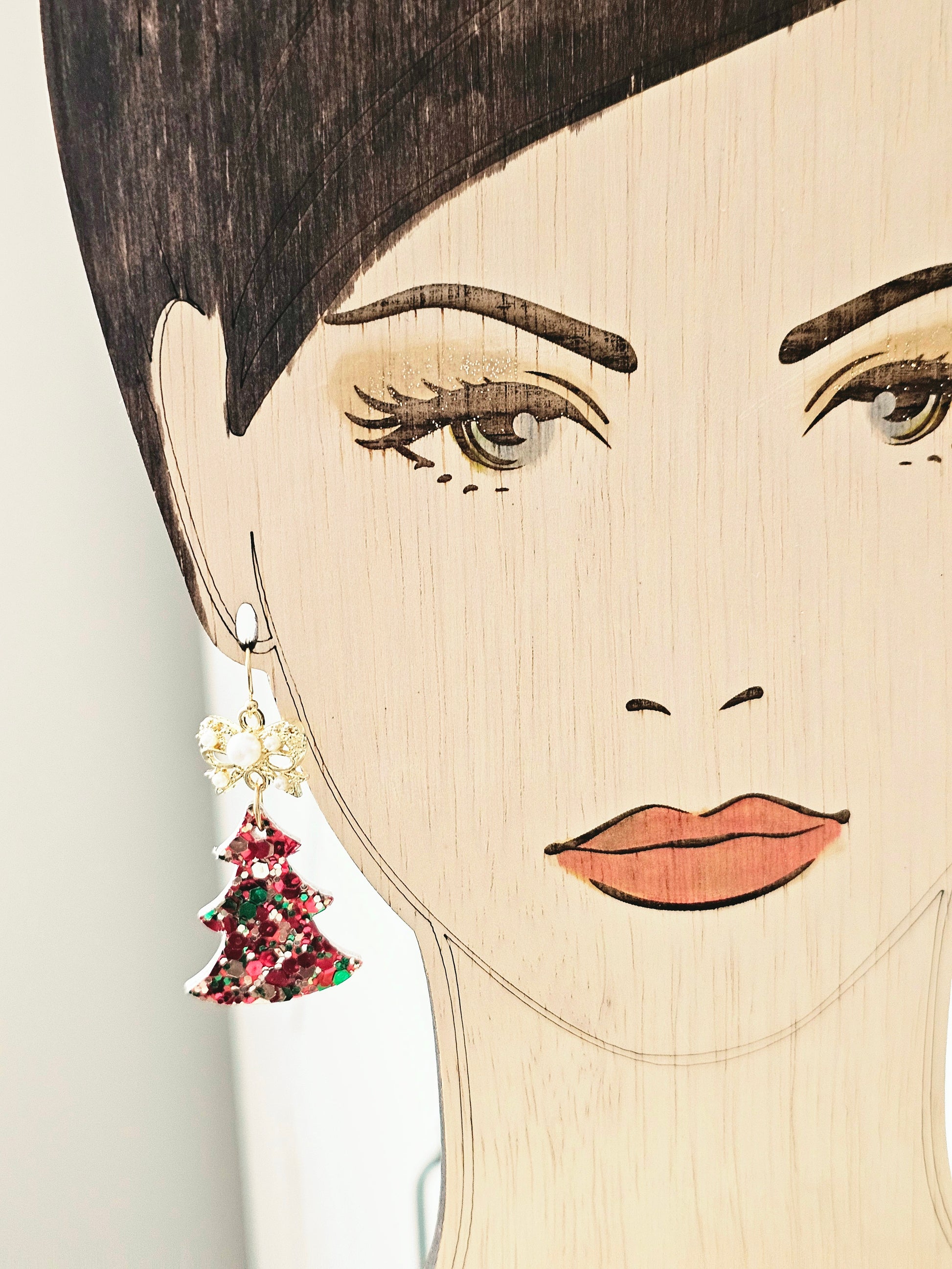 Glitter Christmas tree with bow topper. Shown with gold and pearl with lots of sparkle! ✨